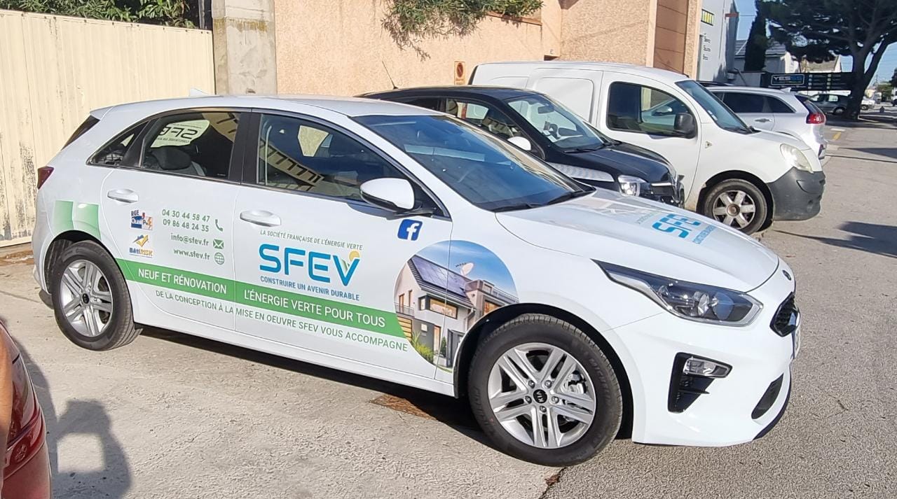 The marking of our fleet of vehicles, brings on our territory a high visibility to Société Française de l’Énergie Verte.